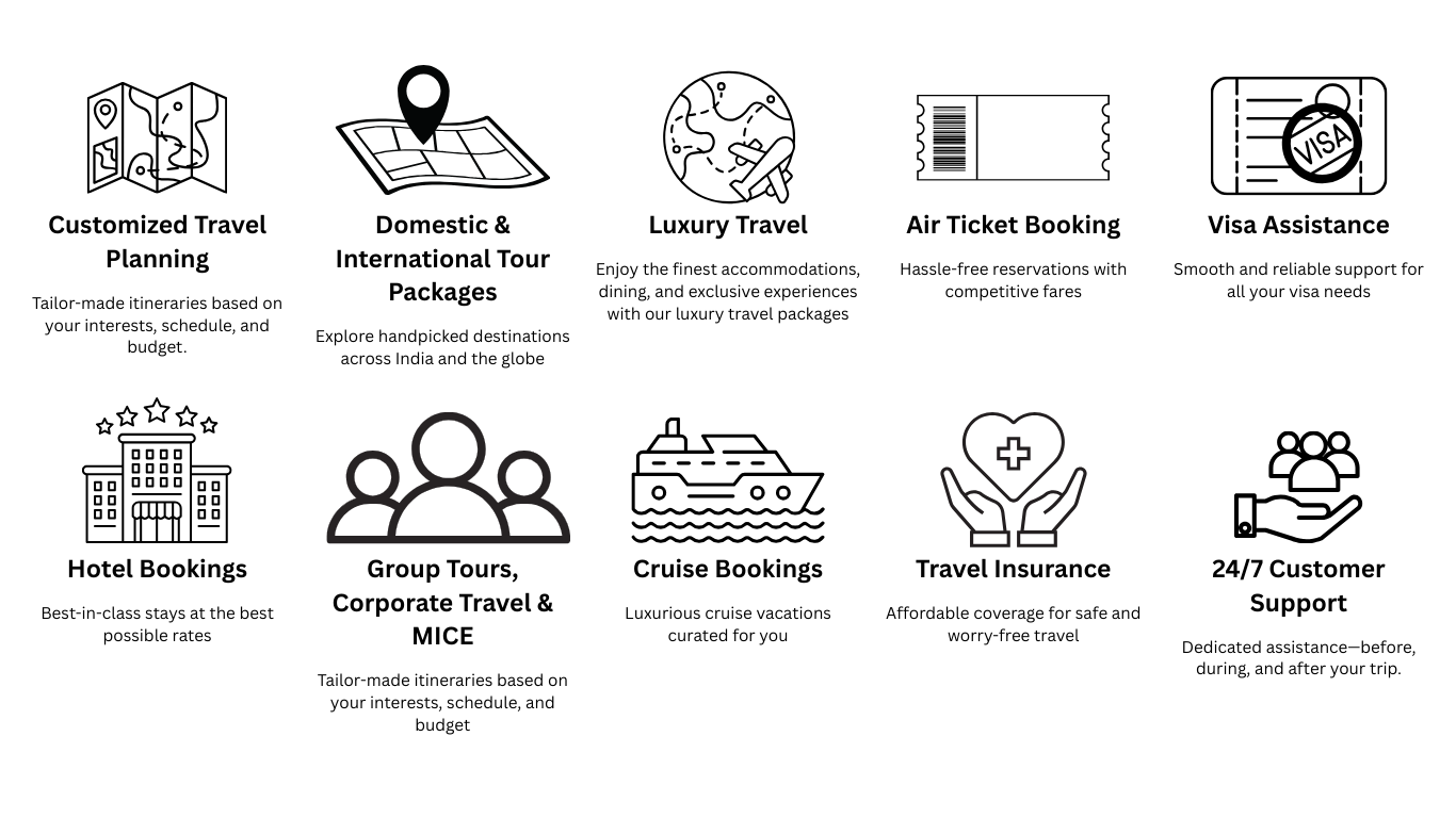 At GlobeTrek Horizons, we offer a complete suite of travel solutions to make your journey effortless and memorable:
